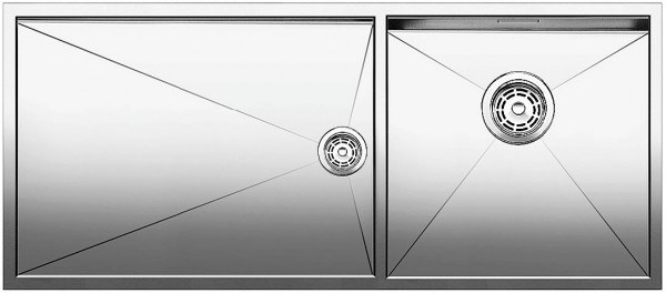 Кухонная мойка Blanco Zerox 400/550-Т-U чаша справа изготовлена из нержавеющей стали с эффектной зеркальной планировкой, которая при бережном уходе надолго сохранит свой блеск. Мойка имеет интересную необычную конфигурацию – просторную основную чашу и дополнительную, которая выполнена как поддон – с большой площадью и малой глубиной. Чтобы установить мойку, нужен только один вырез в столешнице.