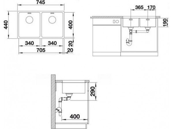 Кухонная мойка Blanco Andano 340/340-U с двумя большими чашами выполнена из высококачественной нержавеющей стали и предназначена для установки в шкаф от 80 см накладным методом - под столешницу.