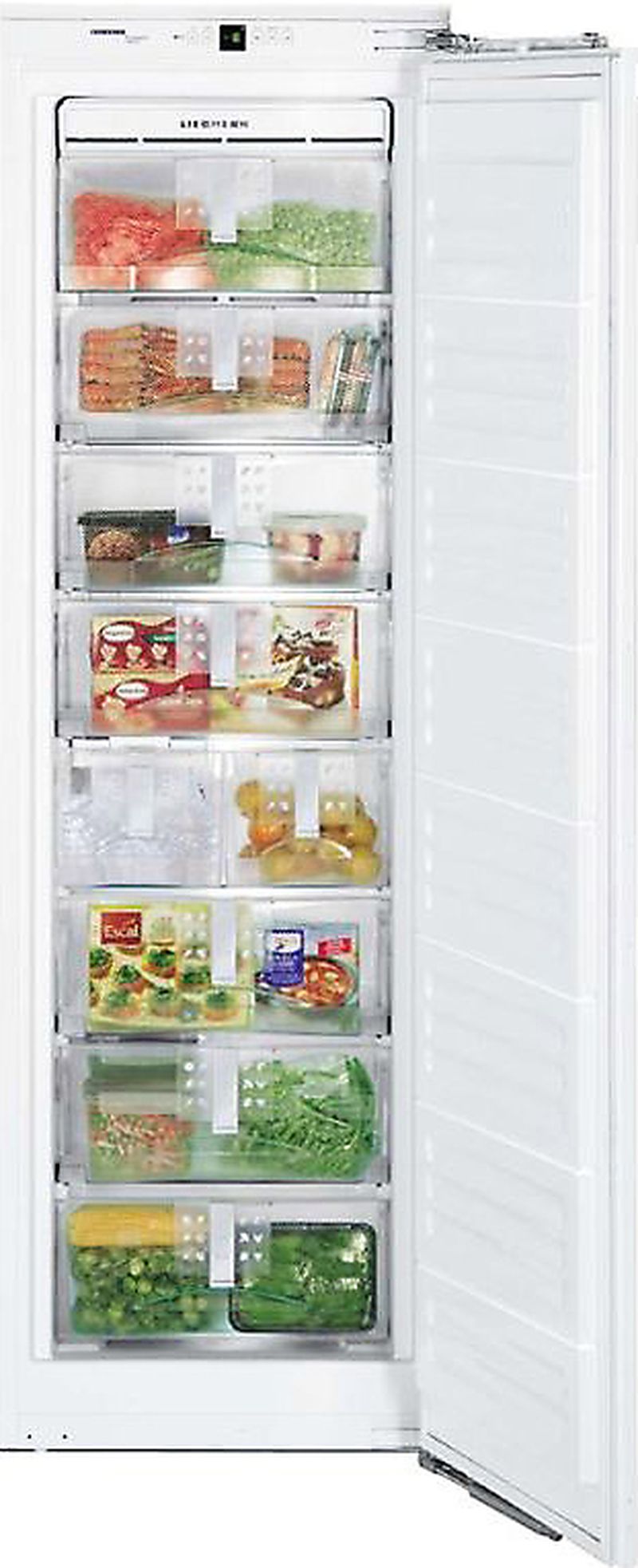 Идеальный вариант морозильного шкафа, применимый и в домашнем обиходе, и в торговых центрах. Данная модель лучший вариант для большой семьи, организующей частые приемы гостей или имеющих привычку закупать продукты впрок. Модель разделена на 8 выдвижных ящиков. Сохранение холода в течение 34 ч. Мощность заморозки 18 кг в сутки.