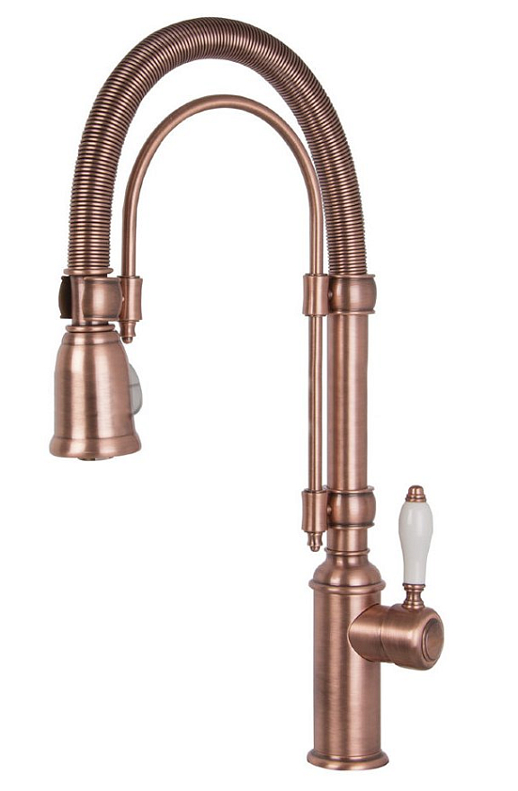 Смеситель SMEG MIDR7RA-2 выполнен в элегантном медном цвете, а уникальный дизайн подчеркнет роскошь кухонного интерьера. Выдвижной излив обеспечивает комфортную мойку нестандартной и крупногабаритной посуды, а поворот излива на 360 градусов позволяет установить модель с мойкой, оборудованной несколькими чашами. Аэратор рассеивает струю, оптимизируя напор и сокращая потребление воды.